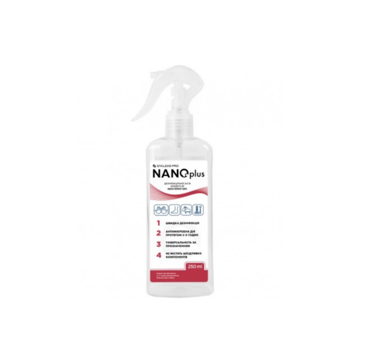NANOplus STALEKS PRO - Швидкодіючий антисептик, який продовжує боротися з вірусами, бактеріями та грибками до 3 годин після нанесення. Підходить для обробки шкіри, поверхонь, інструментів та обладнання.