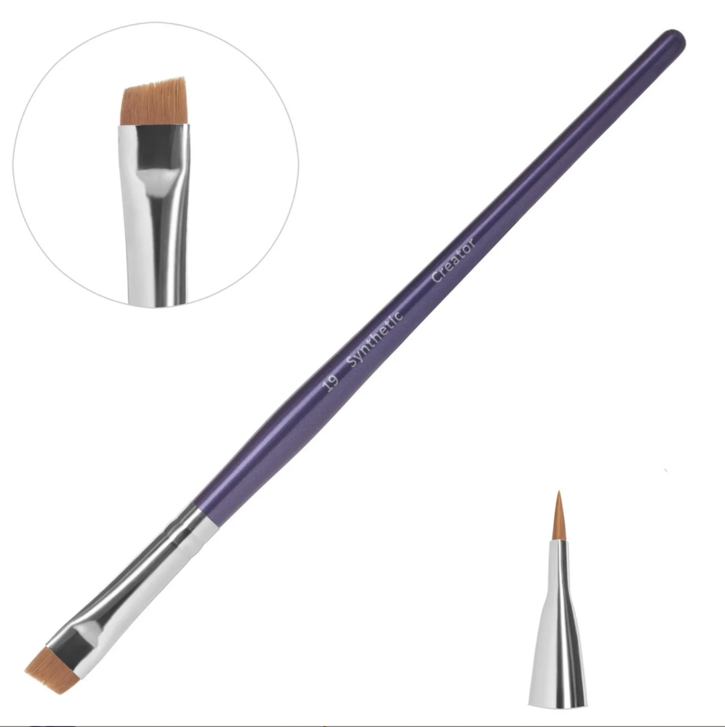 Пензлик Synthetic #19 CREATOR для брів широкий скошений, синя ручка