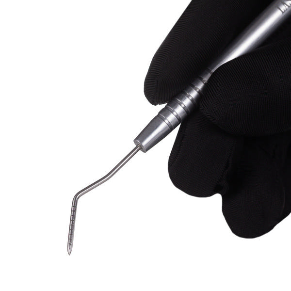 Кінчик має оптимальну гостроту, щоб ефективно розділяти вії, не пошкоджуючи їх, а L-подібна поверхня, завдяки різьбленням, значно спрощує і пришвидчує процес викладання вій.