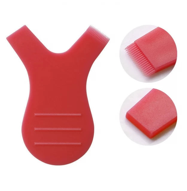 Дуже зручний і практичний у використання, адже має дві робочі поверхні: на одній стороні спеціальні дрібні зубчики, які дозволяють захопити вії від кореня до кінчиків і приклеїти їх паралельно один до одного, створюють ідеально рівну викладку; друга сторона з абсолютно гладкою поверхнею - дозволити щільно притиснути вії до форми, тим самим не допускаючи відклеювання вій від бігуді.