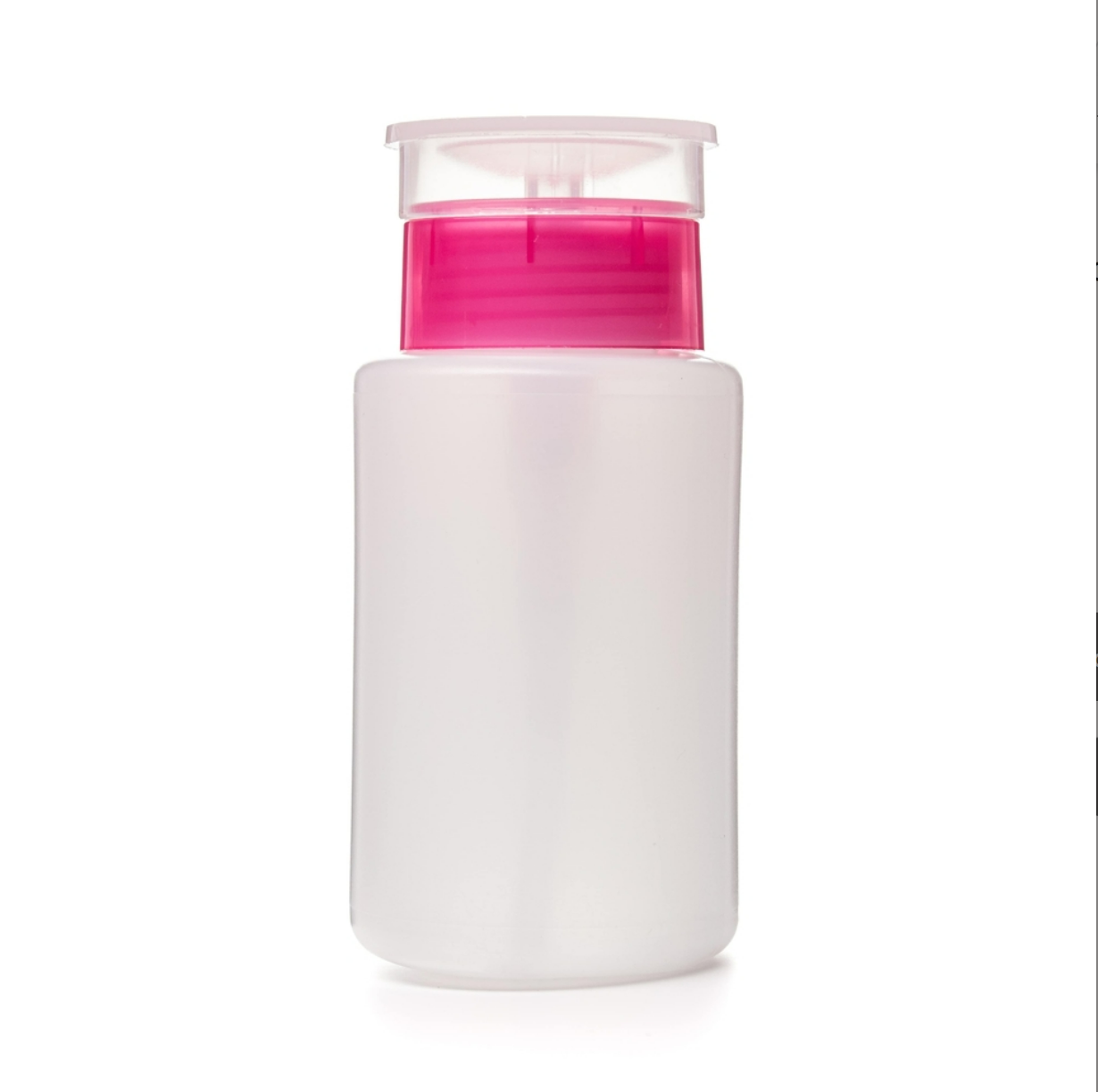 Баночка для жидкости с насосом 150мл, крышка розовая