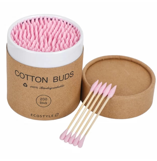 Ватні палички бамбукові Cotton Buds, 200 шт картонна кругла упаковка - рожеві