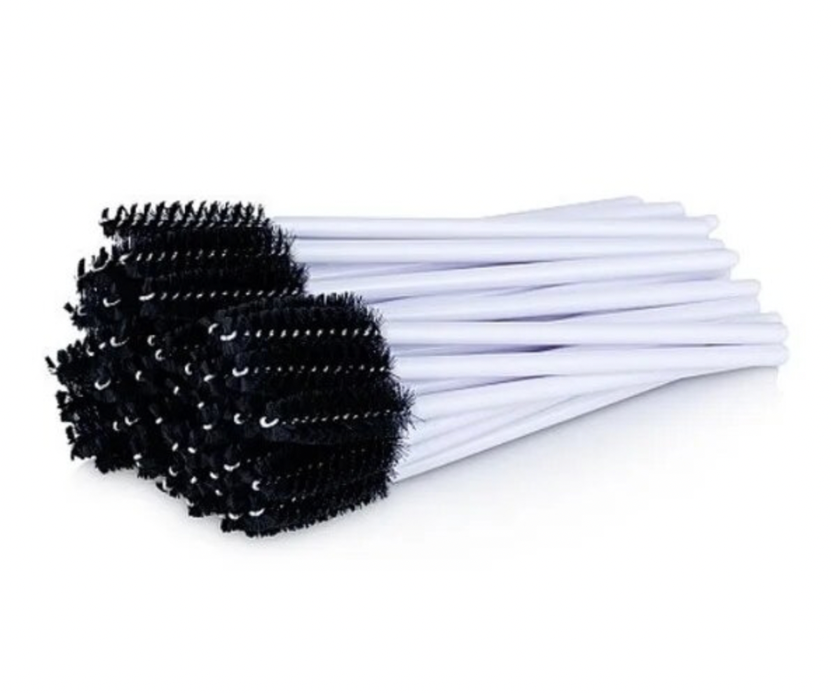 Щіточки для брів нейлонові (ручка біла, ворс чорний) 50 шт.