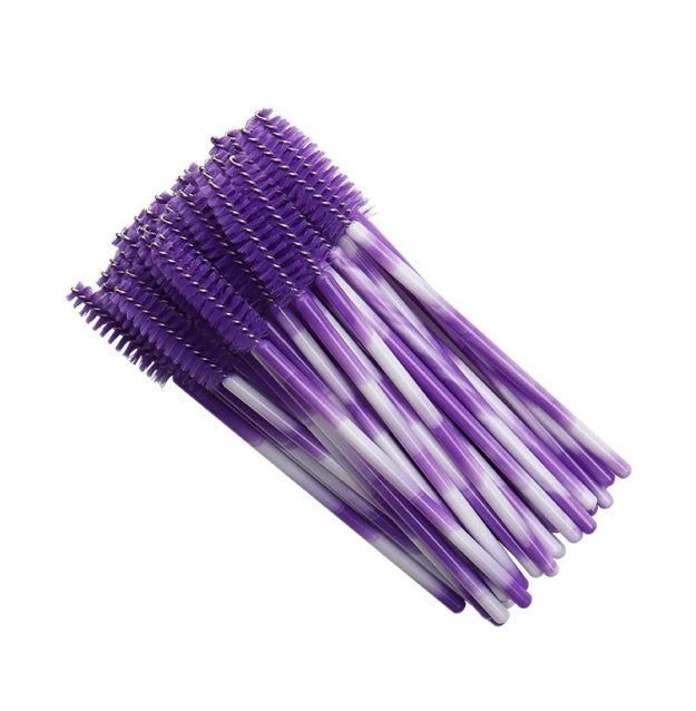 Щіточки для брів нейлонові (ручка фіолетово-біла, ворс фіолетовий) 50 шт.