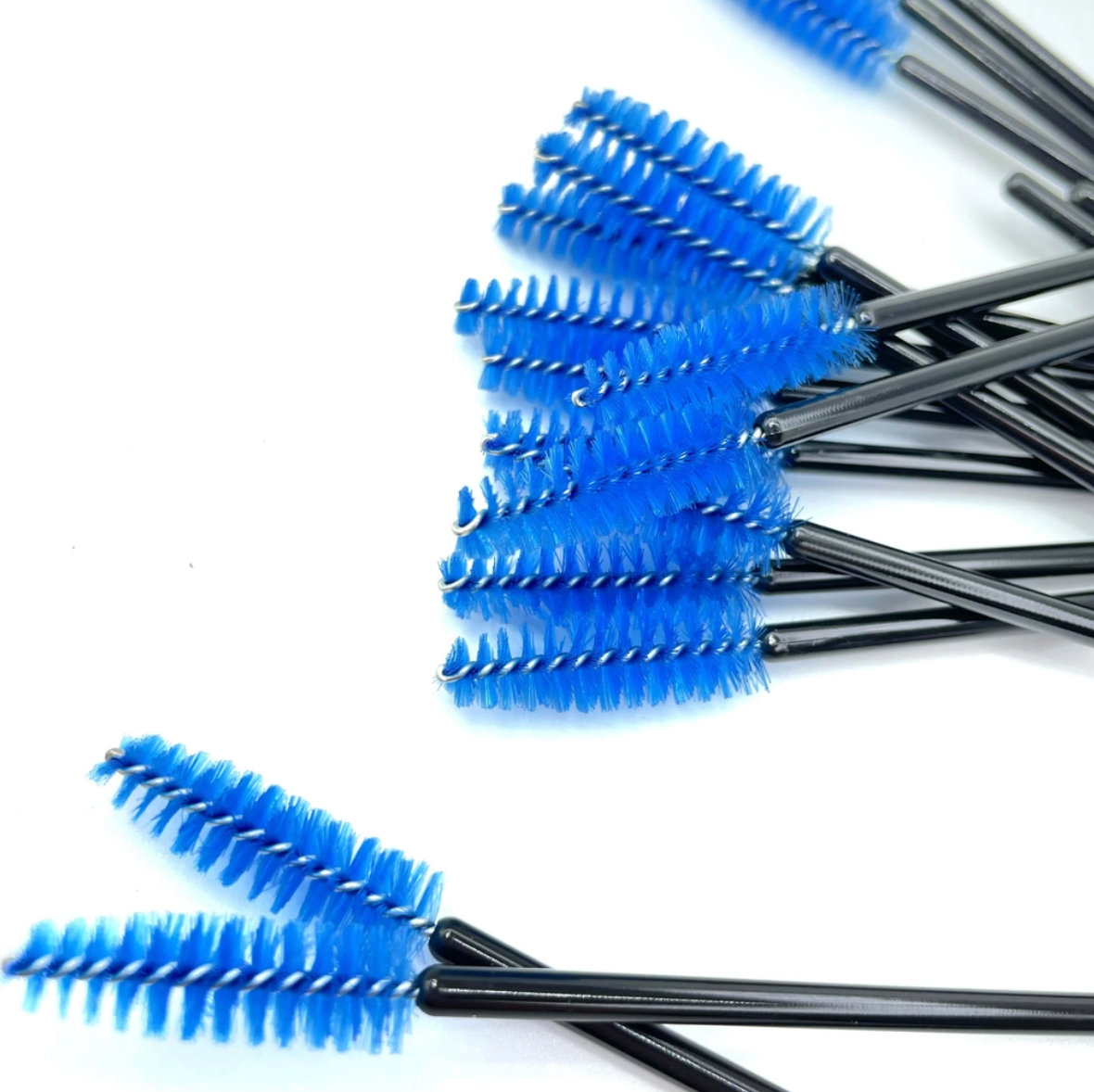 Щіточки для брів нейлонові (ручка чорна, ворс блакитний) 50 шт.