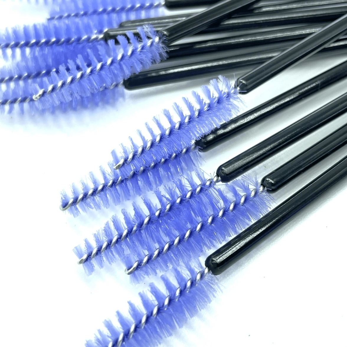 Щіточки для брів нейлонові (ручка чорна, ворс бузковий) 50 шт.