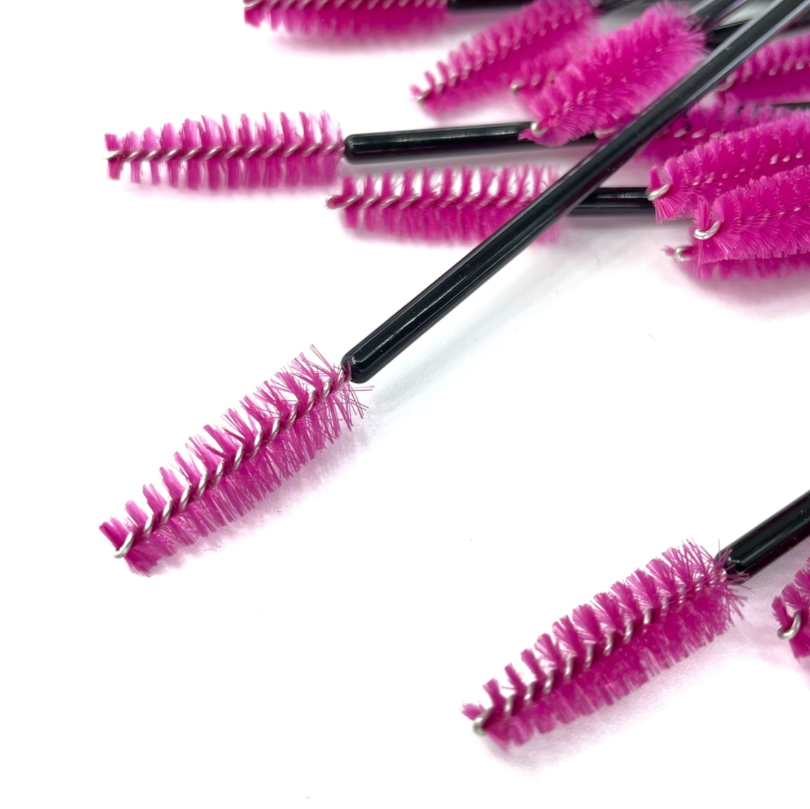 Щіточки для брів нейлонові (ручка чорний, ворс малиновий) 50 шт.