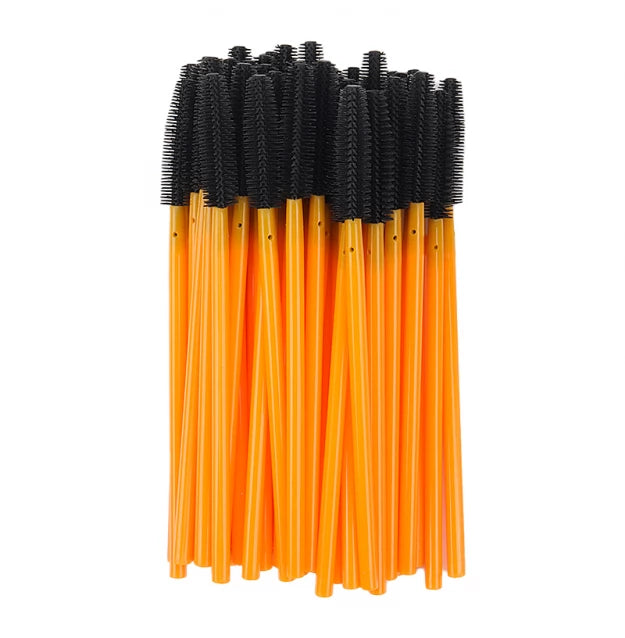 Щіточки для брів силіконові (ручка помаранчева, ворс чорний) 50 шт.
