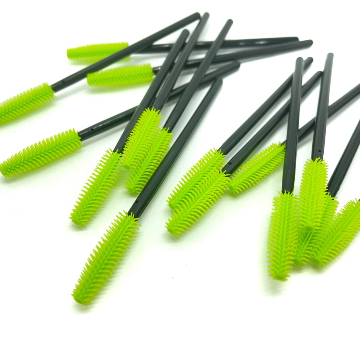 Щіточки для брів силіконові (ручка чорна, ворс салатовий) 50 шт.