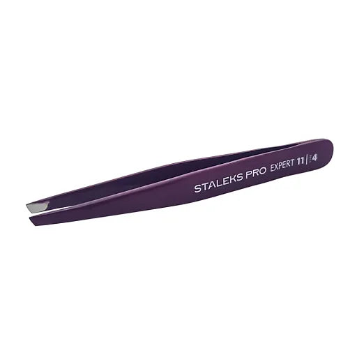Staleks Пинцет для бровей Expert 11 Type 4 (узкие скошенные кромки) фиолетовый